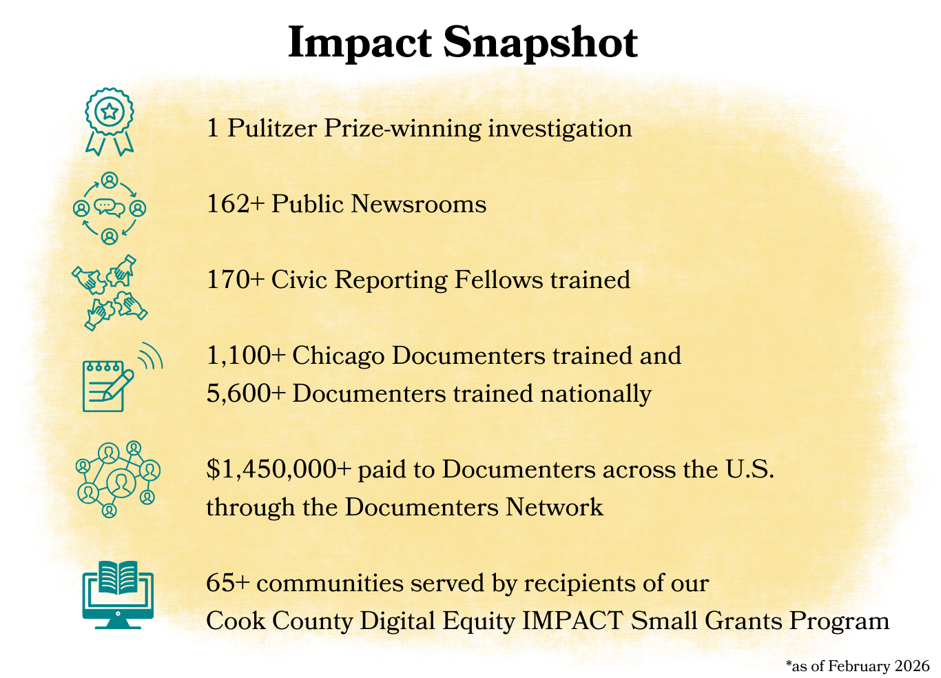 The people at the heart of our media movement are the greatest expression of our impact. Locally and nationally, people are making change in their communities and demonstrating the transformative power of civic media. Our reporting has informed policy change at the city and state level, strengthened public accountability, supported new community resources, and earned national recognition. Most importantly, it has equipped thousands of people to participate more fully in civic life.